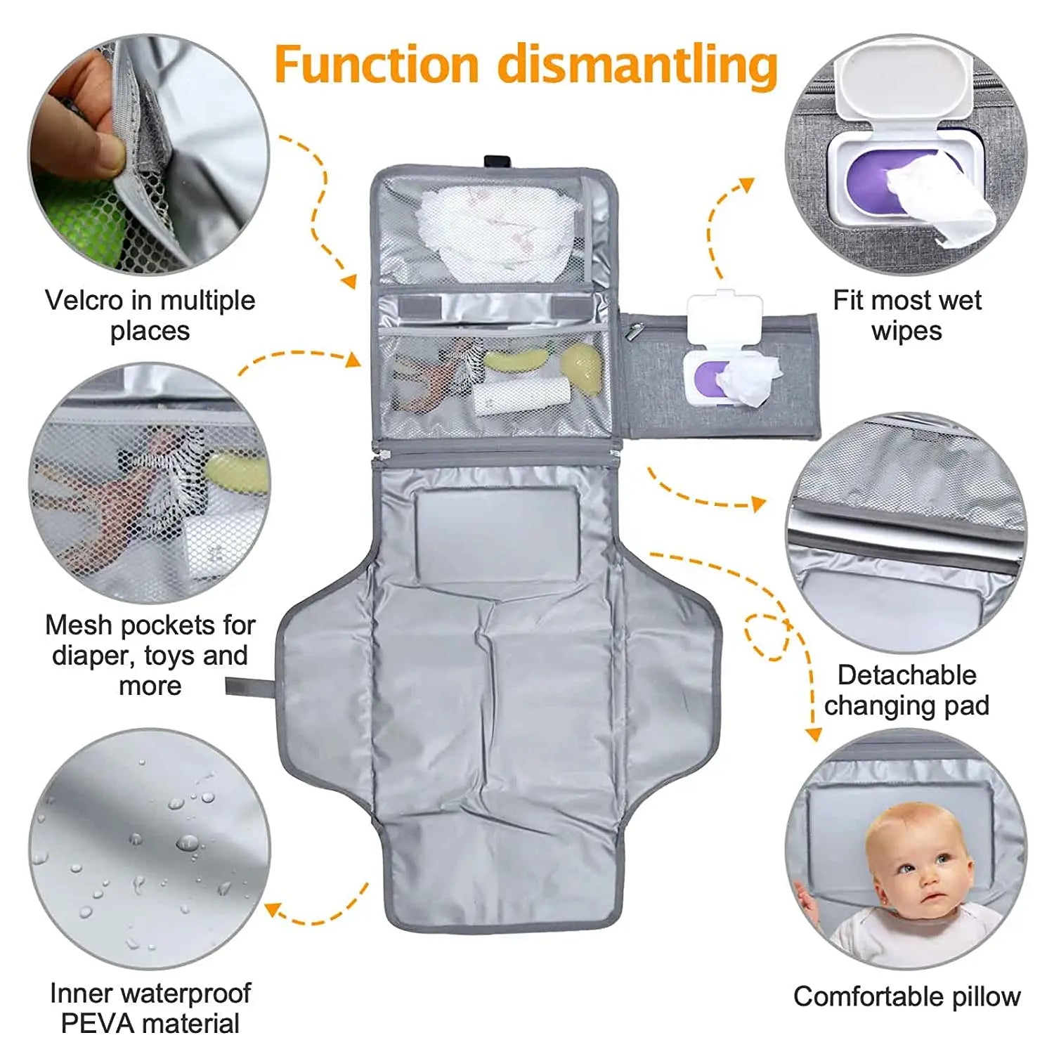 Introducing the Baby Changing Pad Diaper with Wipes Pocket, the perfect solution for on-the-go parents seeking convenience and comfort. This portable detachable baby diaper changing mat is designed for both functionality and ease, ensuring that diaper changes are quick and hassle-free wherever you are.