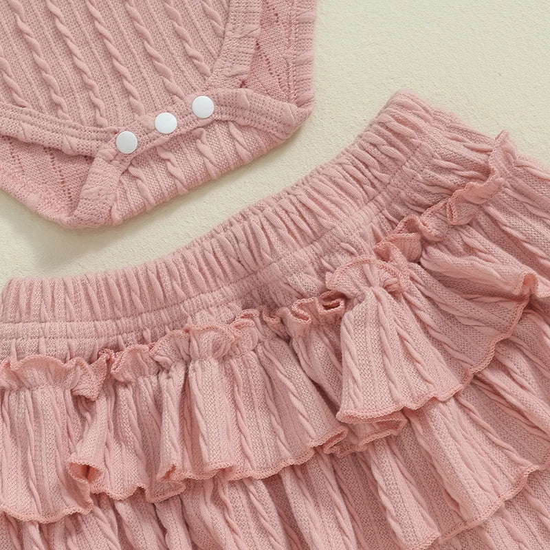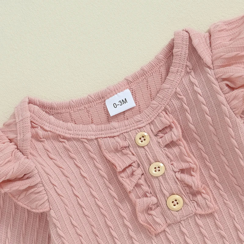 - Includes a long-sleeve romper with a crew neck and a coordinating pair of pants for a complete outfit.